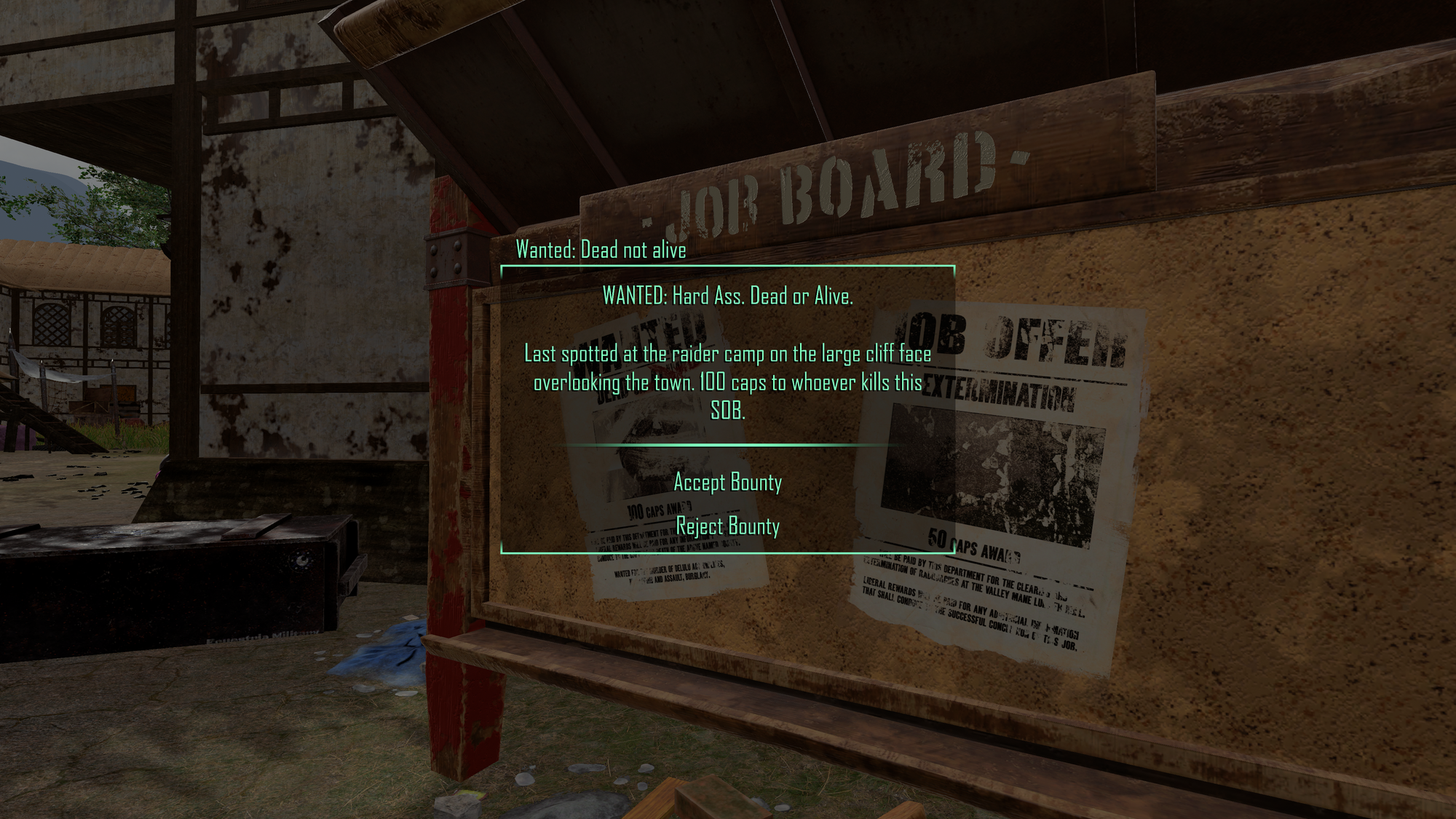 Need some caps? Maybe check out the bounty board, where a mysterious pony has open jobs - if you're not afraid of some danger.