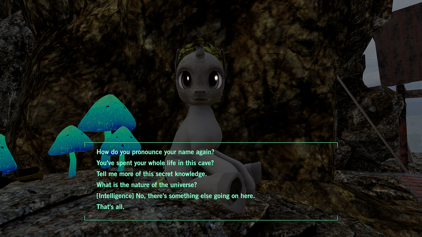Our NPCs are now fully voiced, so you can get the full experience talking to the wasteland's resident ponies.